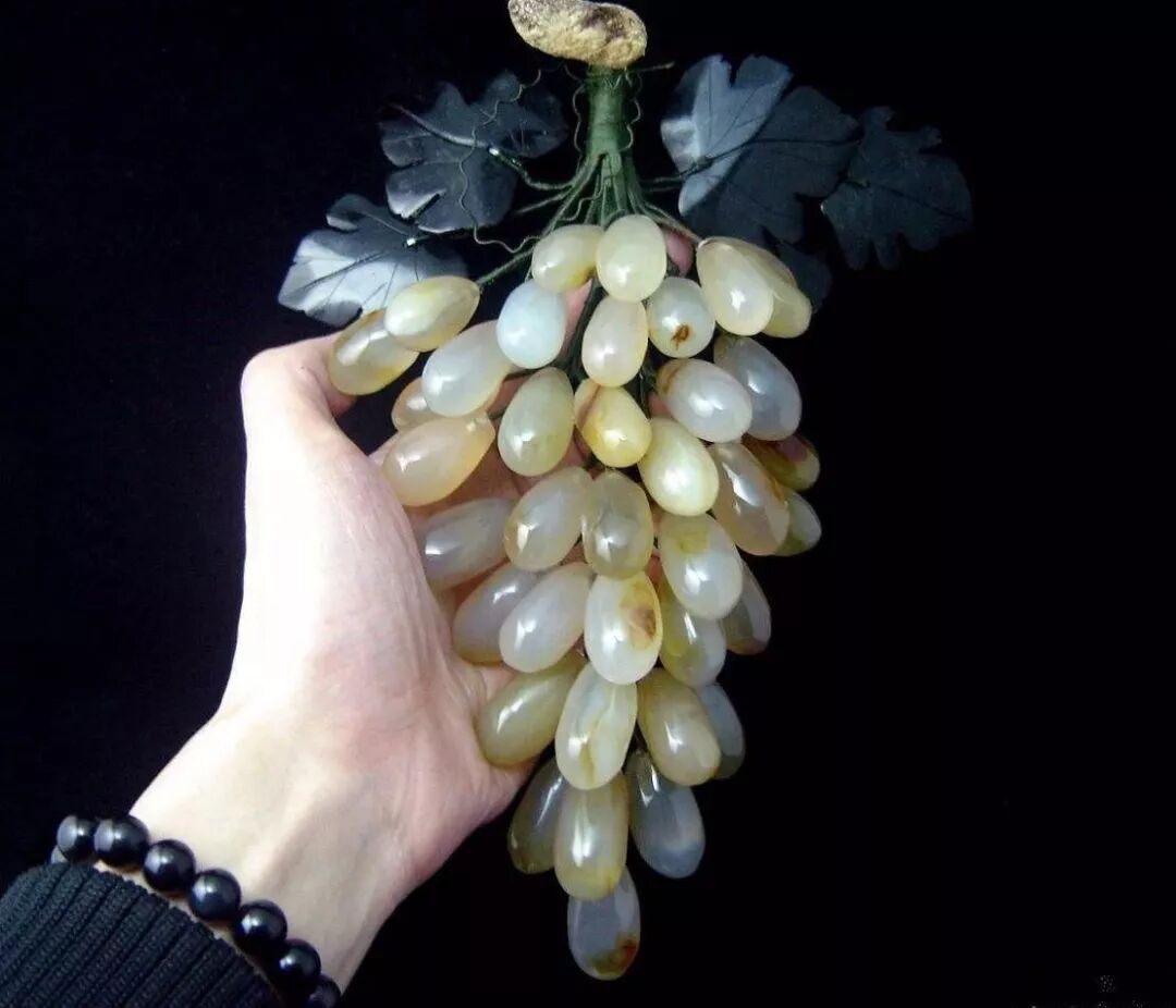 △花料岫玉雕刻的葡萄串,太逼真了,让人想尝尝看~
