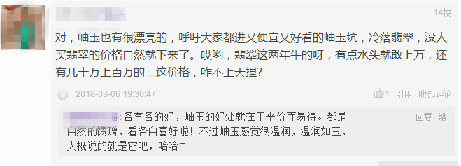 没错,这只漂亮的手镯是岫玉手镯。还有网友回复,大家都去买岫玉,冷落翡翠,就可以让翡翠降价了!