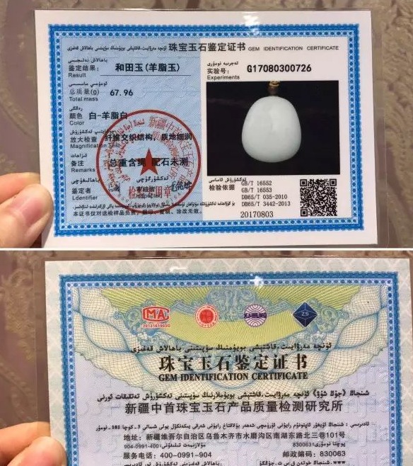 真正权威的羊脂玉证书,目前只有新疆的省级鉴定机构能鉴定出示。