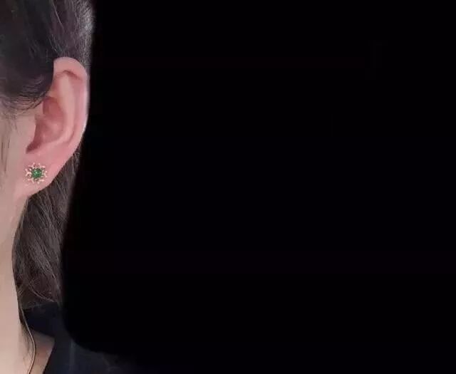 可以选择绿色较浓的耳钉来减小脸部的视觉宽度,最好是配有小钻的群镶款,或是长一点的耳坠。