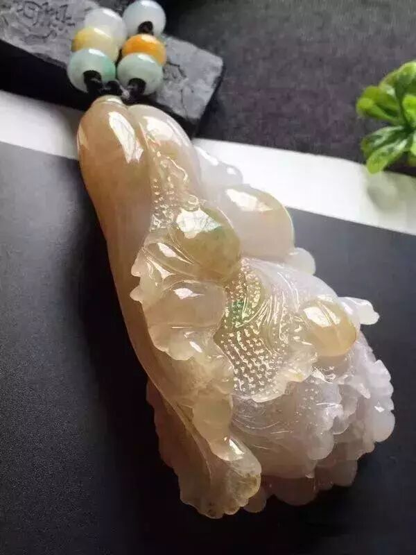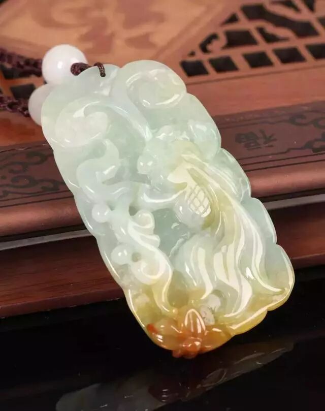 有时候,翡翠金鱼也会与其它吉祥图案,如荷叶、莲花、如意等搭配,使其锦上添花。
