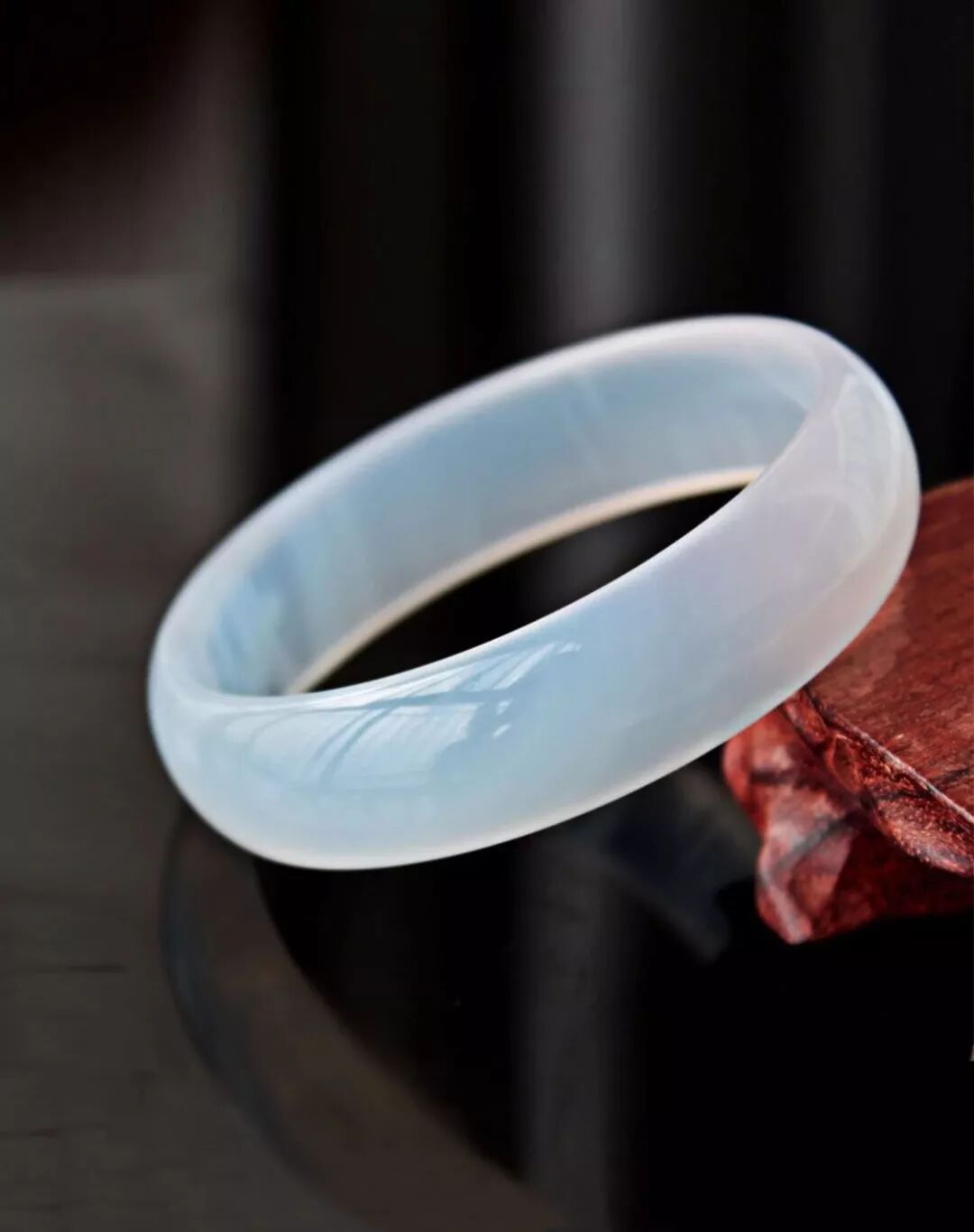 (2)光泽:虽然玉髓跟翡翠一样都是非常通透的玻璃光泽,但翡翠的光泽普遍要比玉髓更亮、更透,而玉髓则带着一点点烟状的感觉。