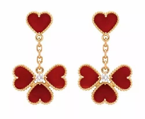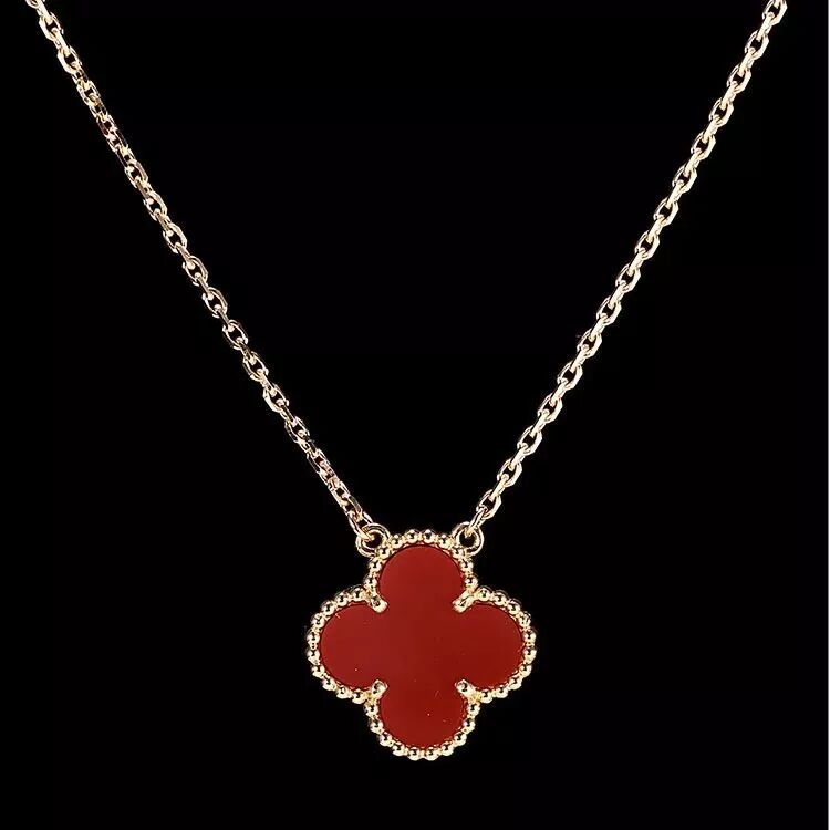 梵克雅宝家非常有辨识度的四叶草,用的就是红玉髓,戴起来非常亮眼,又很百搭,是它们家人气非常高的一款。