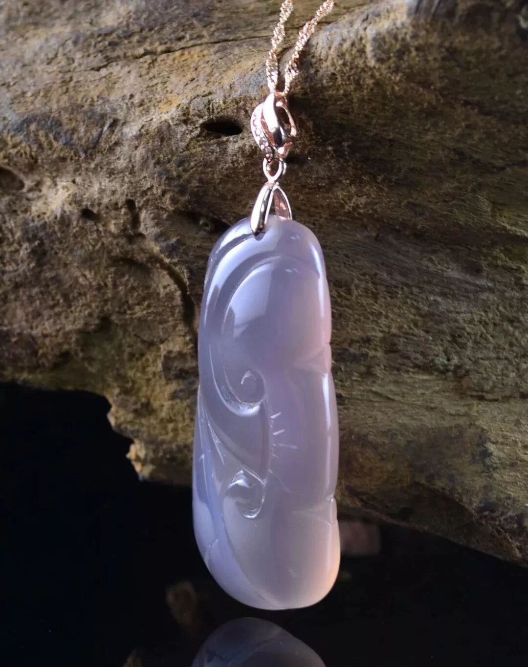 有个词叫“紫气东来”,紫色对我们中国人来说一向是贵气的颜色,紫色的玉髓也象征着富贵。也有人认为紫玉髓代表着月亮,贴身佩戴有化解煞气的功效。