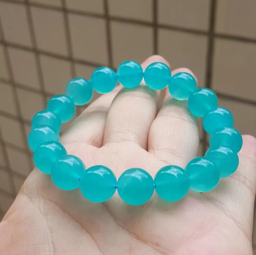 除了白色之外,清爽的蓝色玉石也很适合,因为蓝色是比较显“高级”的色调,如果害怕自己肤色显土的话,可以考虑用蓝色珠宝提一提气质。