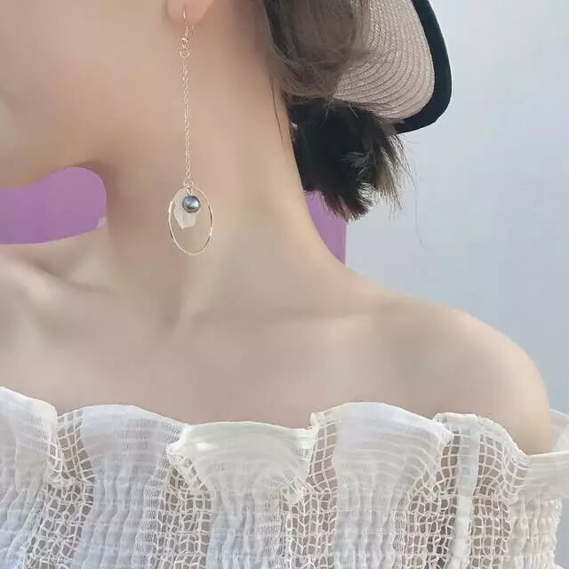 吊坠耳环还是比较常见的,一般是用金属链,然后加上宝石或者特殊材质(毛球、竹藤等)作为点缀的饰物,长度不一。