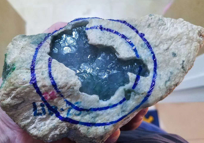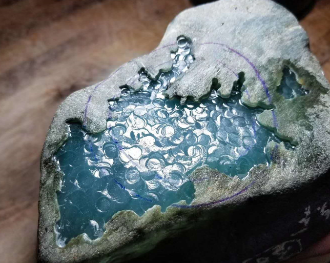 切开后根据质地的水头和颜色,断定翡翠的用途把切开的翡翠原石分级,颜色漂亮的水头好地方。
