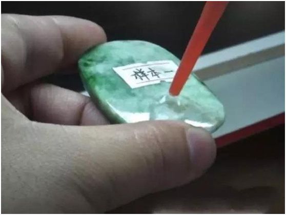 辟谣:这个是利用翡翠光滑表面的张力所形成的现象。由于几年前B货的制作方式还比较落后,B货翡翠表面会有很明显的酸蚀网纹和酸蚀凹坑,当水珠滴上去之后便不会呈圆珠状。但近年来B货翡翠制作时会经过二次抛光,经过这道工序之后,B货翡翠表面的酸蚀网纹和酸蚀凹坑在十倍放大镜下都荡然无存,所以滴水法已经完全没有什么科学理据来支撑。