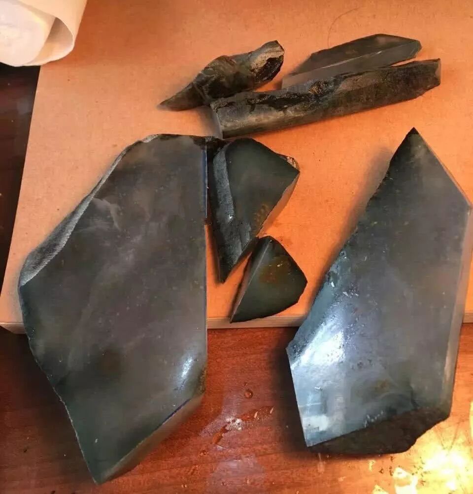 下面去皮,一共切出7片,两块无事大牌,剩下的边角料可以做吊坠,戒面,期待成品的效果!