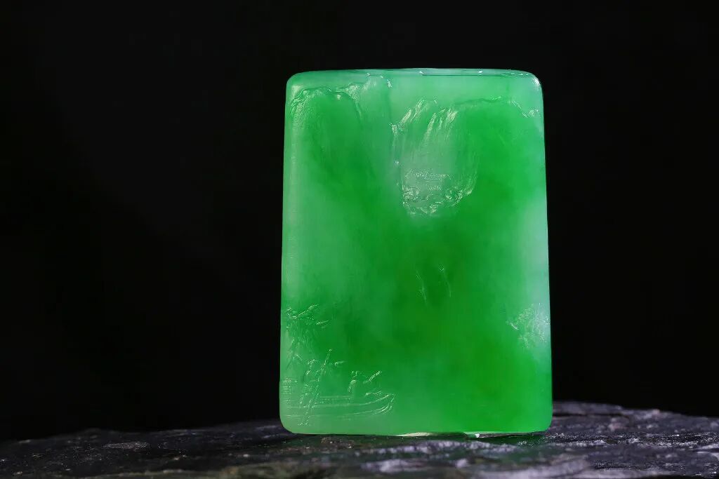 一块价值8万满绿的翡翠片料,看整体的起货效果,你们觉得值吗?