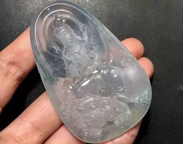 这样的料子不是很容易就能博得出来的,很少有料子能切出这样的片料,就如少女般清纯!雕刻师傅设计了两件普贤菩萨和一件文殊菩萨,已经雕刻完成我们来看看!