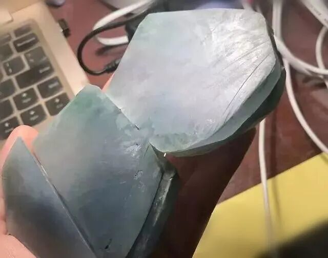 最上面也切了一个盖子,漏出来的肉质和侧面的肉质是一样的,没有变种,无明显的裂纹和棉,薄薄的皮壳里面都是可以利用的玉肉,太漂亮了!
