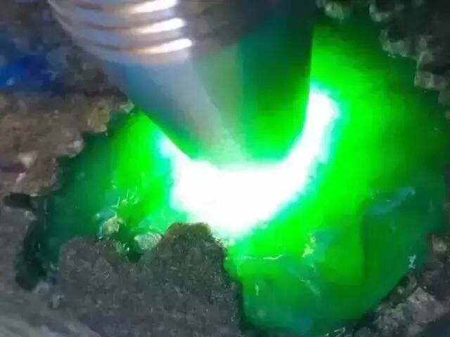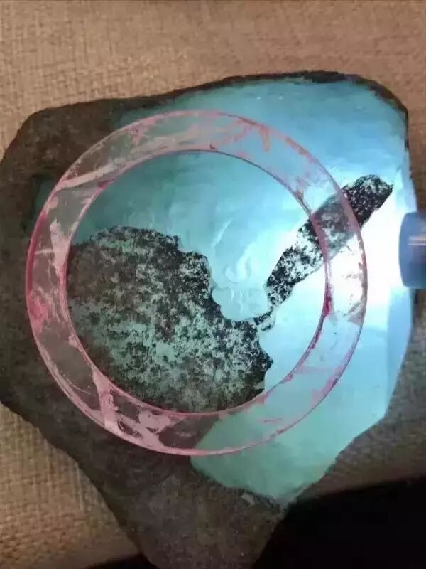 翡翠原石的擦石主要是看其皮壳上的雾、底和色。当你找对了擦石部位的话,就可以从擦口部位打光向翡翠原石的内部观察了,这样可以较为准确的判断其内部绿色的深度、宽度和浓度。