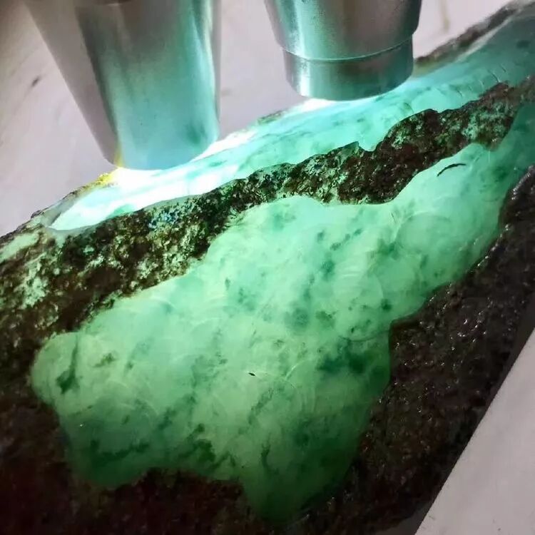 3万买的翡翠原石,开完窗就笑了,灯一打,如人间仙境。