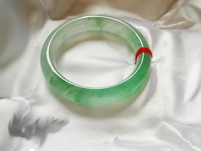 那接下来就是收获喜悦的时刻了!翡翠玉镯莹润细滑,晶莹剔透,强荧光,质地细腻且精致,起胶味,底庄干净无瑕。飘绿花色,灵气十足,上手优雅大方,高贵大气,轻奢华丽显气质,看着就舒服养眼。