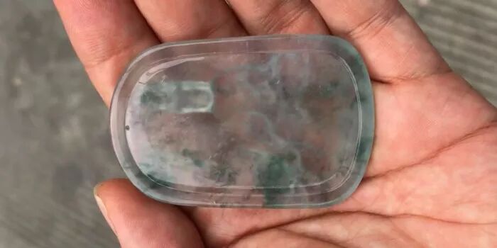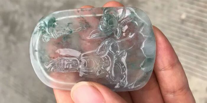 通常脱砂皮翡翠的水头足长,品种会起胶起荧。砂皮翡翠常见到阳色与蓝花,多为冰地翡翠。