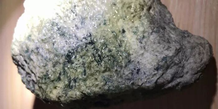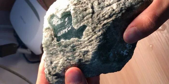 有些原石几乎全部脱砂,有些原石则部分脱砂,即使那些有砂皮的原石,也能在某些部位找到脱砂感,脱砂感是莫西沙翡翠原石的重要特征。