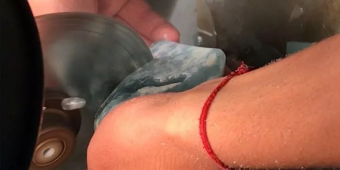 原石棉和裂都赌的非常好,原石较小天生就是出挂件料,把原石去皮切片中。