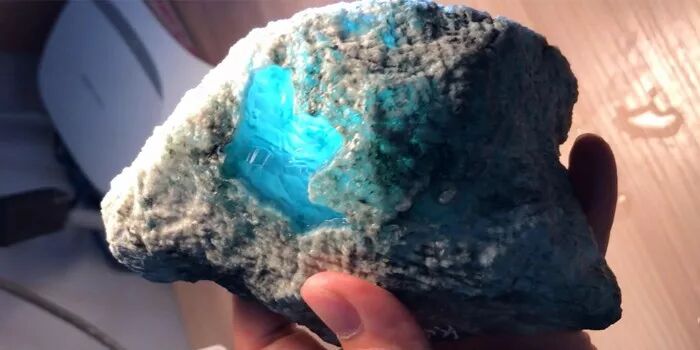 我们打灯看下,天空蓝,莫西沙的起货都是非常好的,预计成品做出来会有玻璃底的效果。