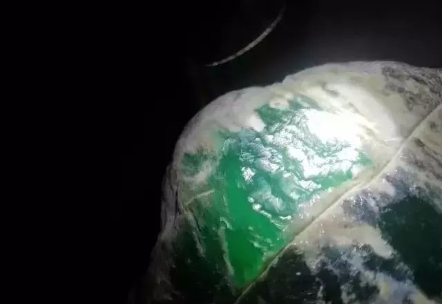 就是这块料子,看皮壳可以看出,是木那场口的料子,露出的肉在自然光下发黑。