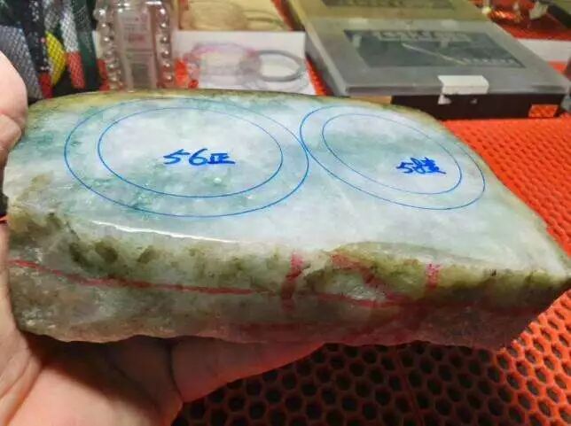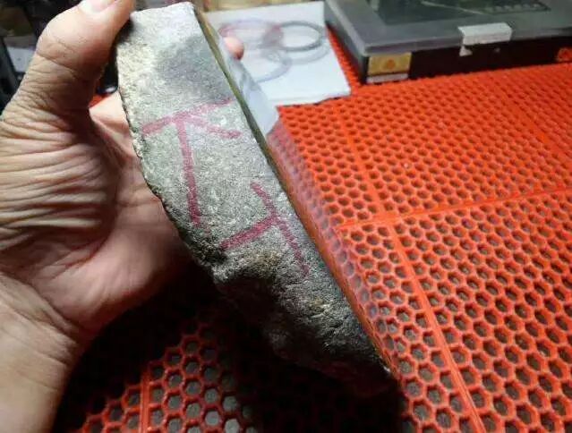 有一条淡淡色带,裂便是这块翡翠原石最大的赌性,与缅商讨价还价22000买下来!