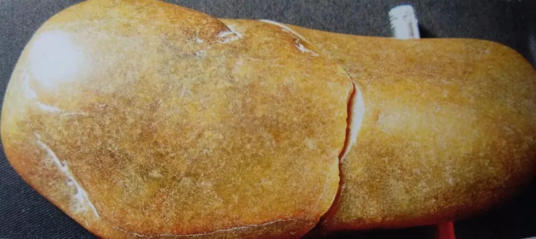 与水石不同,山石所受地表水流的冲刷和搬运较弱,因而可以保留其完整的皮壳,使人看不到玉肉而难以分辨山石的好坏。不过山石质地的好坏虽然十分悬殊,但却可以通过皮壳上的砂发特征及各种表现来加以判断,诸如皮壳的厚薄,沙粒的粗细均匀及紧密程度,皮革的颜色以及皮革上的松花及蟒带的表现情况等,这些表征都可以作为判断山石的玉石好坏及其相应特征的依据。