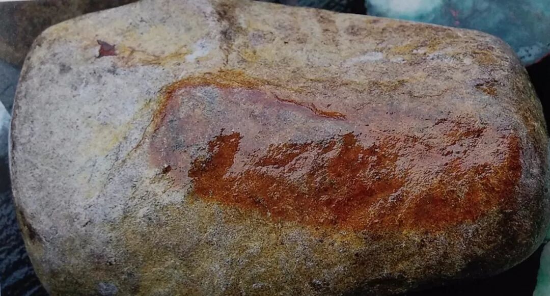 山石,黄白泥砂皮壳,擦开皮壳见红雾