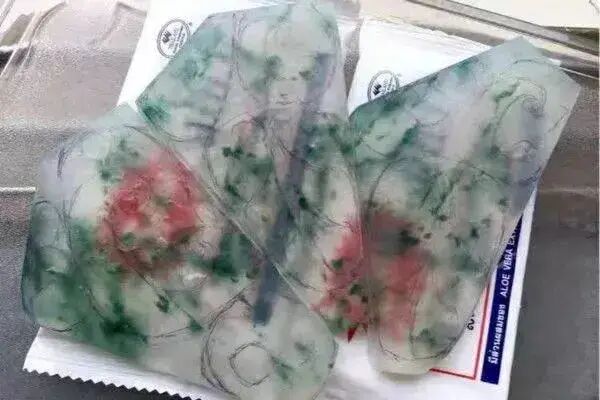 货主没有选择用一刀切的方法直接切割它,而是首先开了一个窗口。开窗后,肉质非常细腻,花朵呈绿色,肉眼看上去种质已超过正冰,开窗位置有几个牌子和挂件位置。