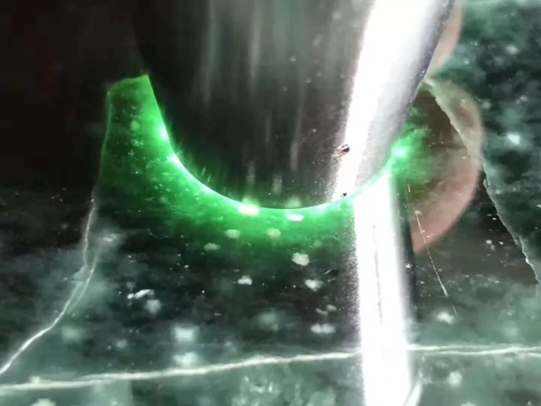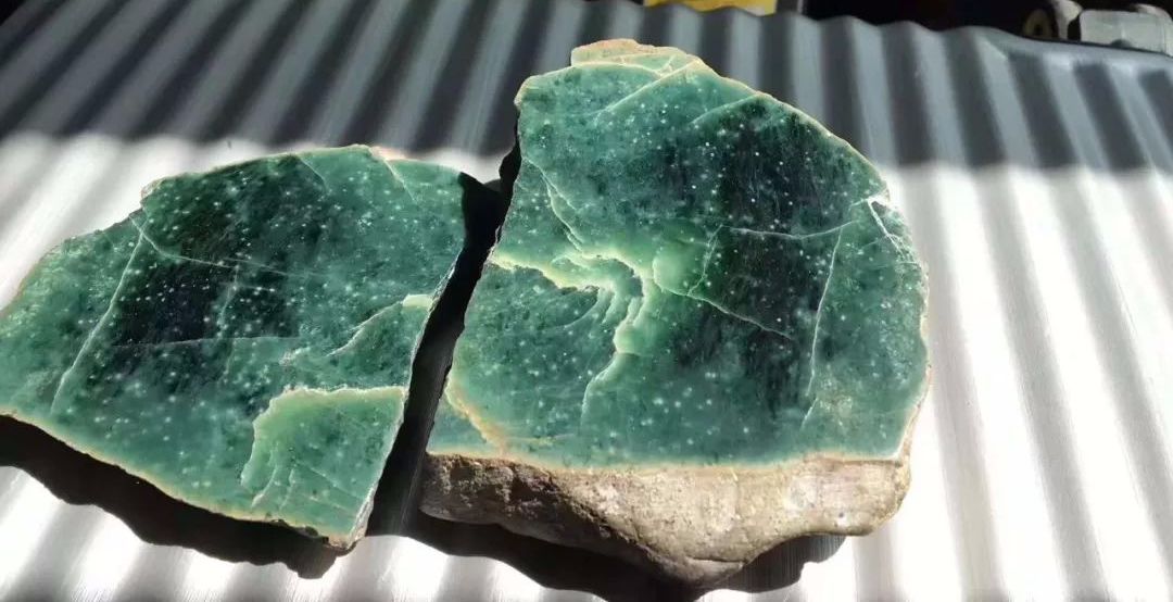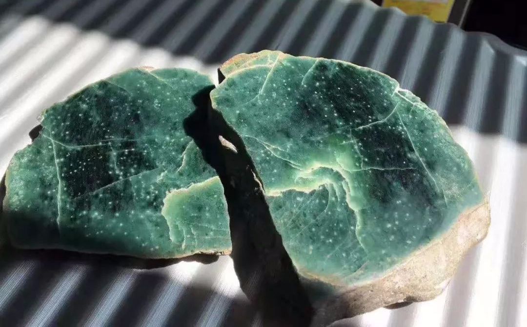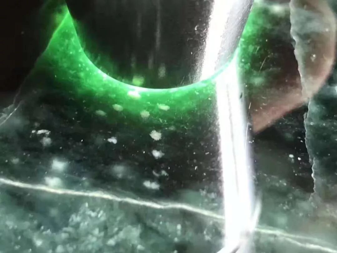 根据我的判断这是稀少罕见的蓝水翡翠,惊喜的是还有星星点点的雪花棉,遗憾的是手镯是取不出来了,但制作成几块大牌和挂件、逆袭的几率还是很大的!