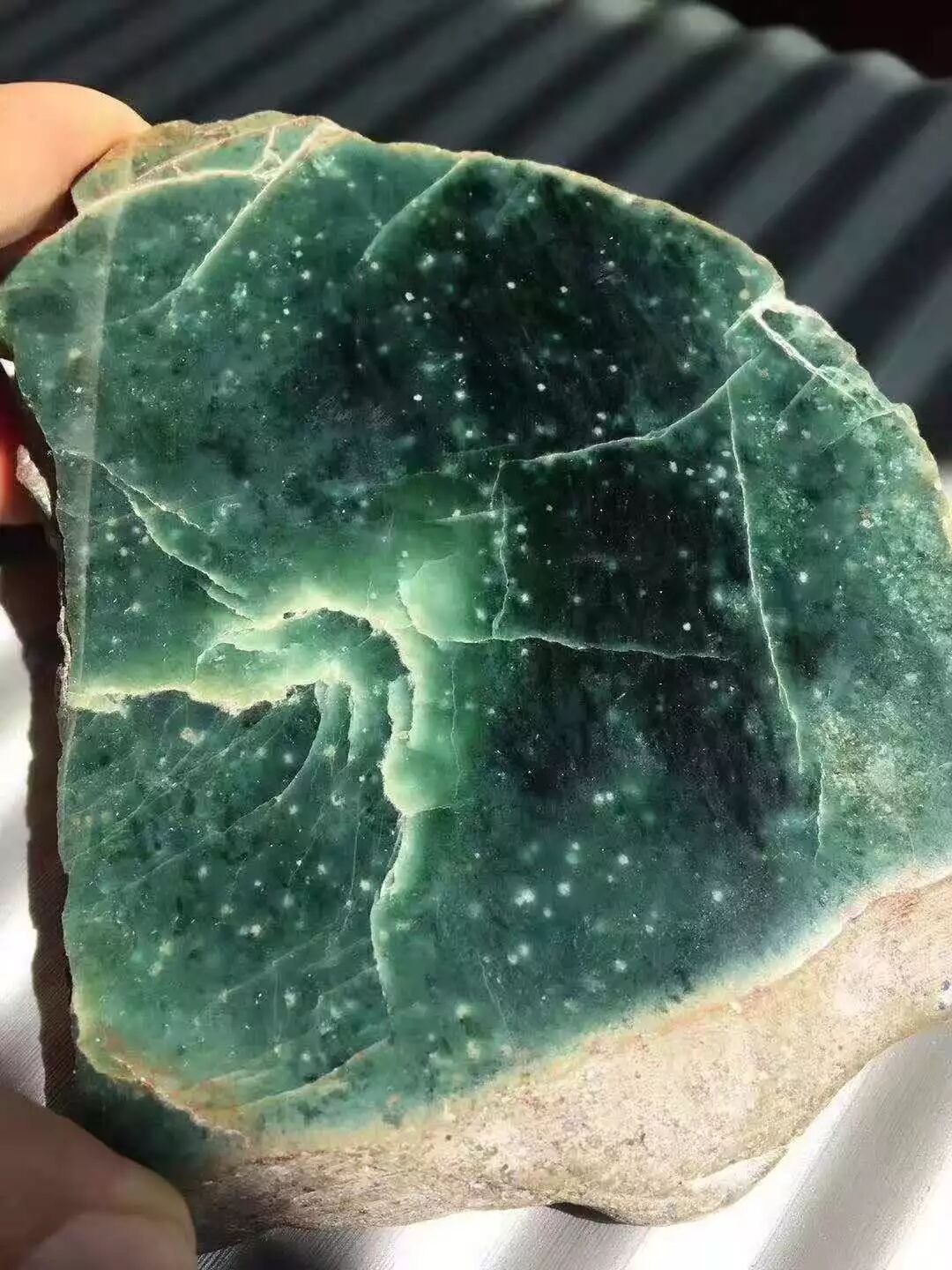 雪花棉显的活灵活现,很多人认为雪花棉就是杂质之一,但是小编对她却没有任何抵抗力,因为这样的杂质真的太美了,因切片加工和雕刻都还需要一段时间才能完成。