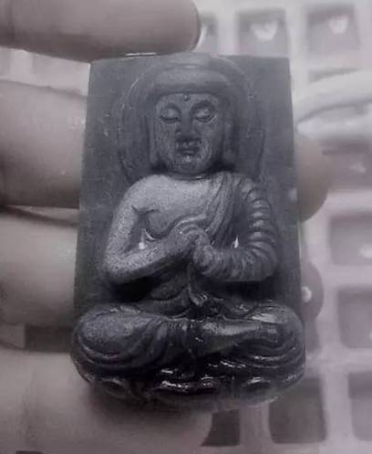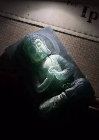 依然是经典的佛像题材,雕刻师先确定了佛的脸部位置,颜色较深的地方决定雕刻莲花宝座。