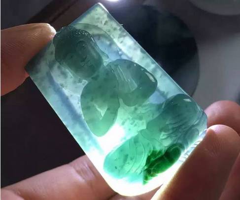 蓝水翡翠本来就隶属油青种,这块料子并不极品,所以看起来和普通的油青翡翠没什么不同,但重点还得是打灯看。