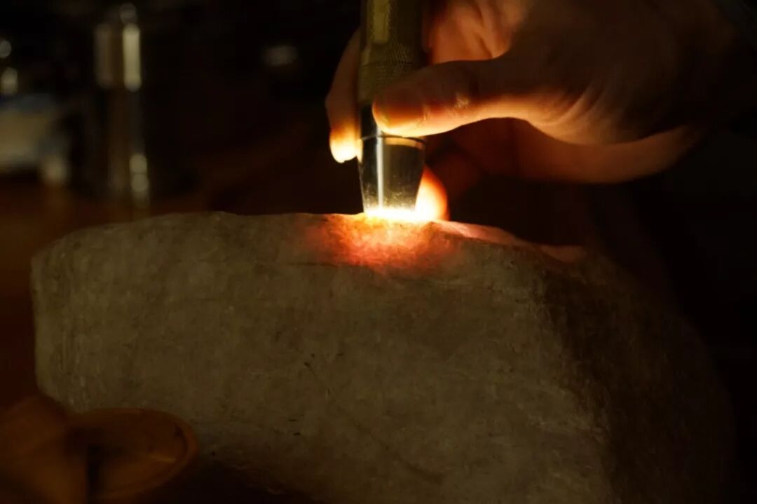 之后用手擦拭翡翠原石表面看是否掉渣,种老的石头是不会有掉渣出现的,是否有扎手的感觉,或者细腻柔滑的感觉,这两种感觉都能作为种老肉细的依据。