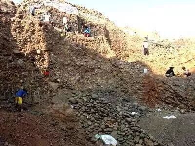 大家都知道老缅在产口找石头的时候根本没那么多时间给你一点一点的分辨是不是翡翠,是不是鹅卵石,通常做法,用锤子敲。