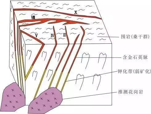 正阁磊实在找不到翡翠的图解,但金矿也会出现“尖灭再现”的现象,就是黄色-红色的那条带,把它想象成翡翠中的绿色就可以啦~~