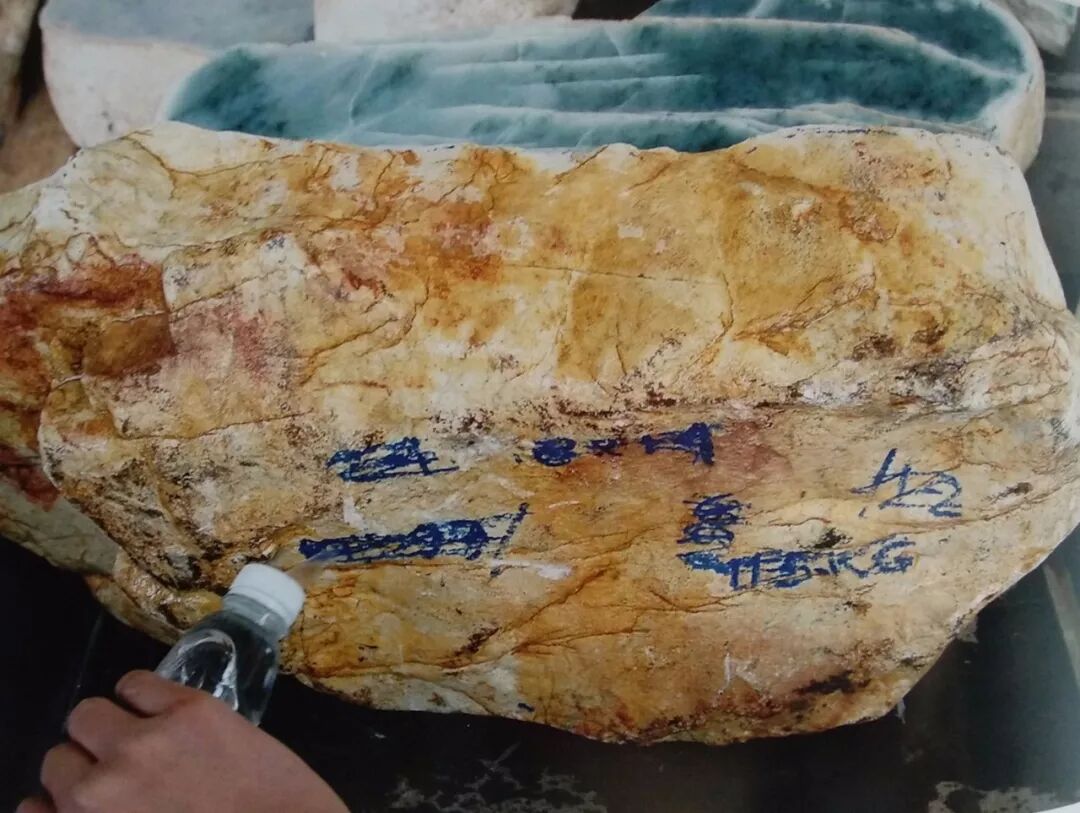 黄梨皮:梨黄颜色,皮薄,打光即可看见内含的颜色,切割后,绿色黄味足,显鲜亮活放,是大马坎最具代表性的块体。色彩比较高,主要是好的玉材。