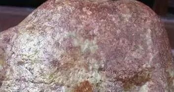 山石,大小不等。色似杨梅红,也称杨梅沙皮。出产这种沙壳的场口比较多,有摆上桥、香公、大马坎、穷瓢、马那、摩哥地等,中等石种,多见牛血雾,一般为豆底。若是壳上出现褐色的槟榔水锈,其色就很不好。杨梅沙皮有的带槟榔水(红白或红黄相间)。主要场口为老场区的香公、琼瓢,大马坎场区的莫格叠,马那也有少量。