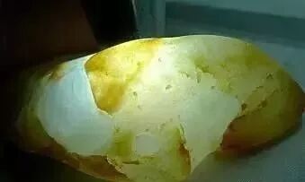 洋芋皮:玉质细腻,皮薄微黄,形如洋芋,有透明感。此皮壳的石头产自大马坎,下面这块为老大马坎水石,完美的小公举。