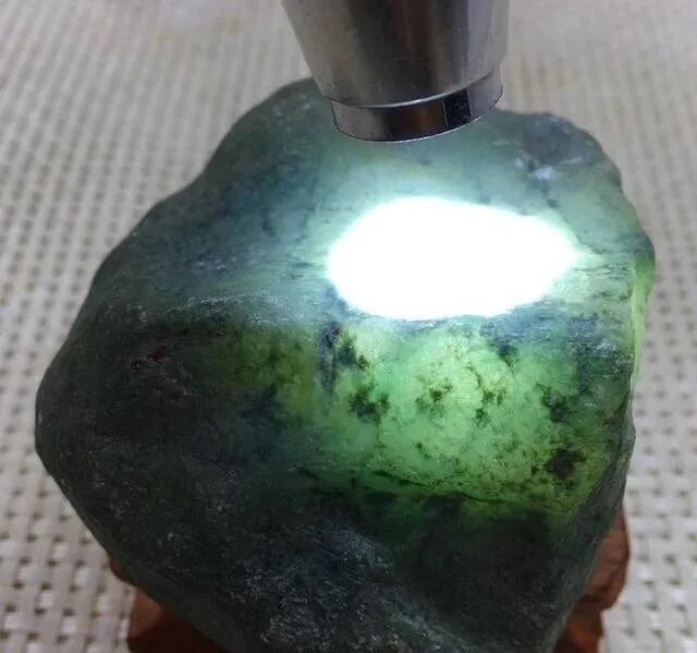 这块南奇翡翠原石从实物来看,皮壳翻砂比较细腻,打灯种水观察都挺好,大家要学会从整体来看一块翡翠原石,今天的翡翠原石知识就分享到这里。