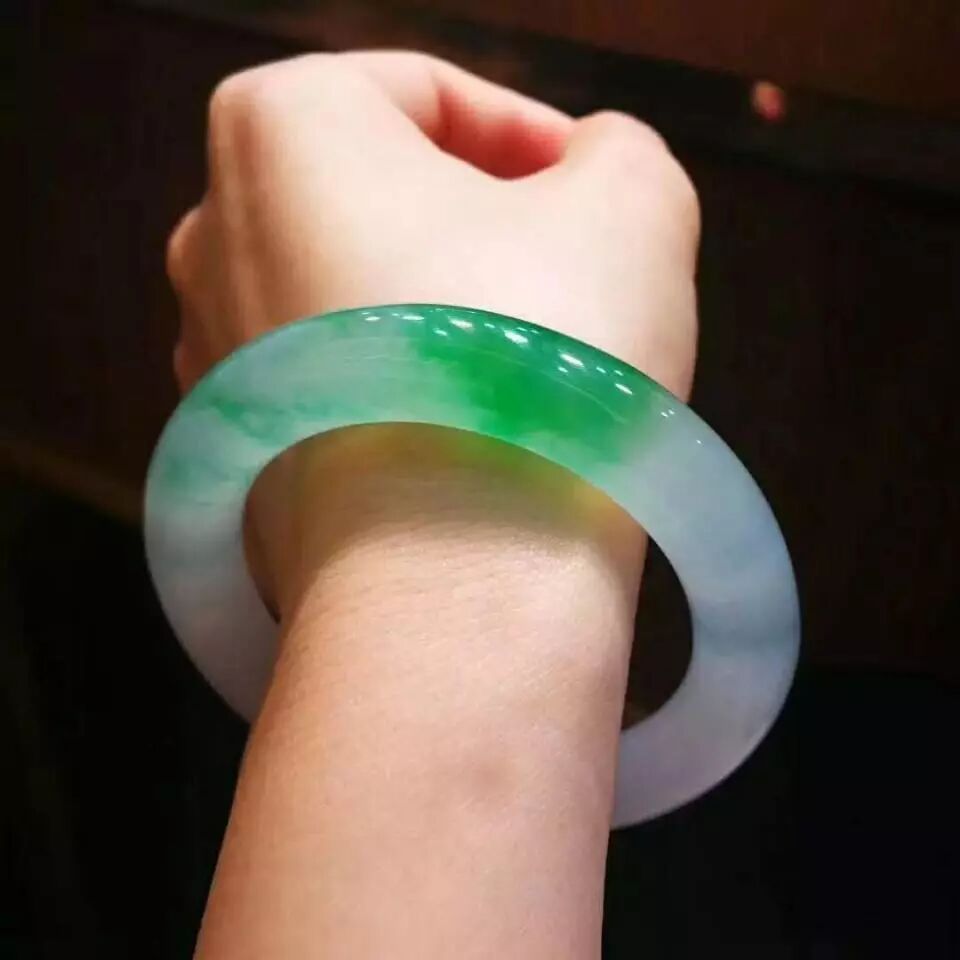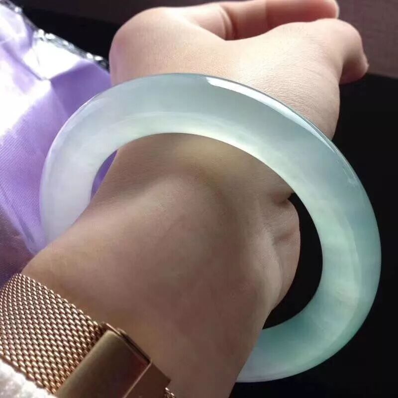 扁条手镯,因为内面是平的,弧度明显大了,这样手镯的颜色和种水、质感能更完美的展现出来。而圆条的手镯则会弱一些。