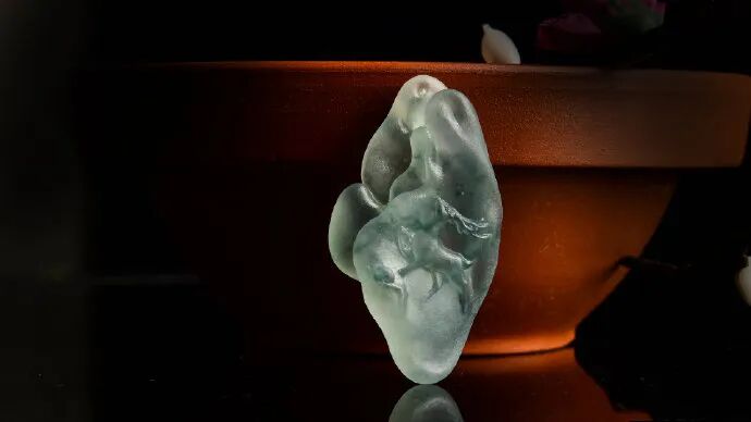 翡翠行业中有句名言,三分料,七分工,工更能体现作品的价值。这块挂件配上顶珠以后,更加漂亮!