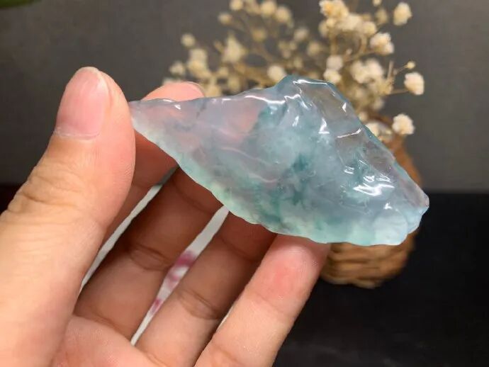 今天跟大家分享一块正冰飘蓝花的小料起货过程,料子的形状有些不规则,一般人挑选翡翠,都不会特别喜欢,因为自已不知道适合定制什么题材?
