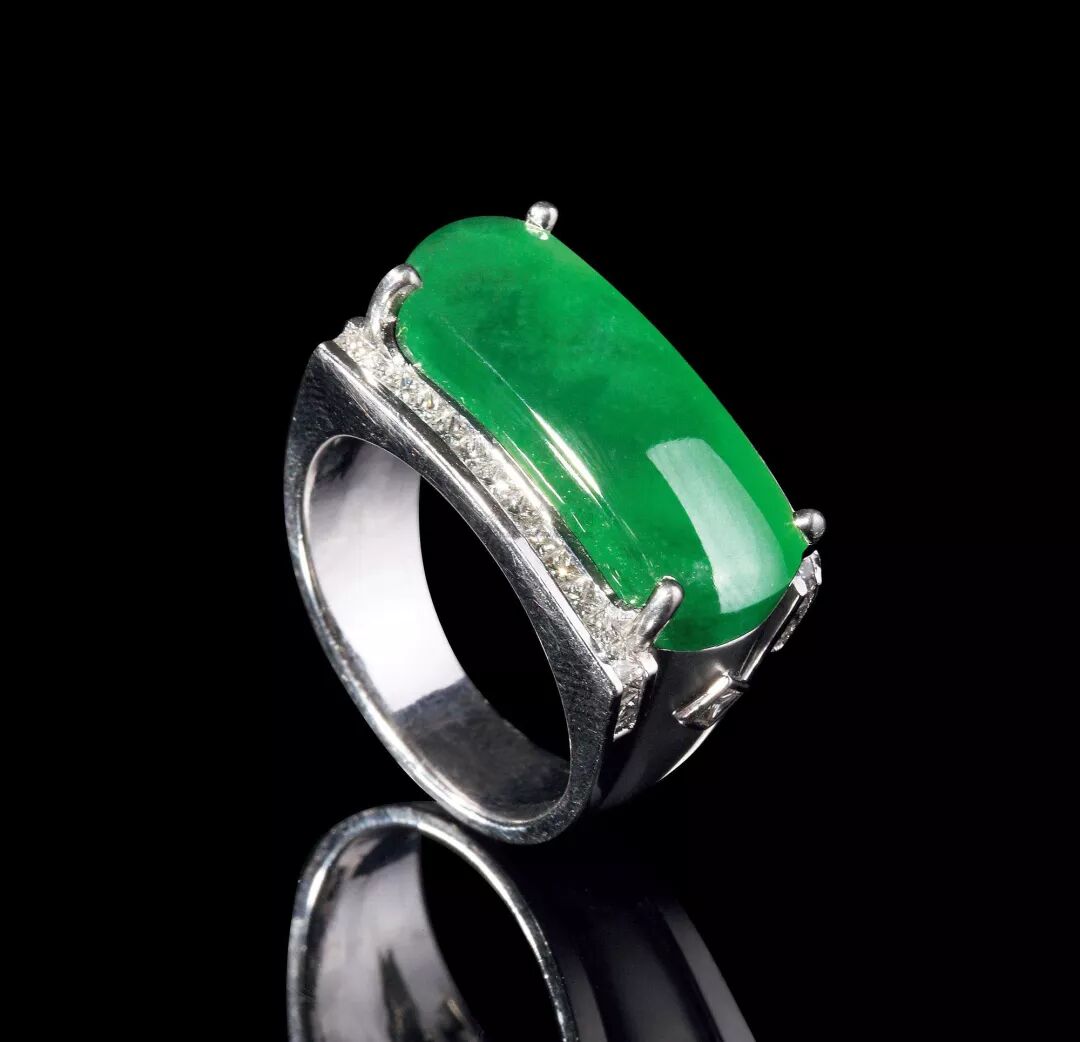 宋美龄的那枚马鞍戒指,就是素面型翡翠戒指了,是用整块的翡翠切磨而成,没有戒托,而是直接戴在手指上。