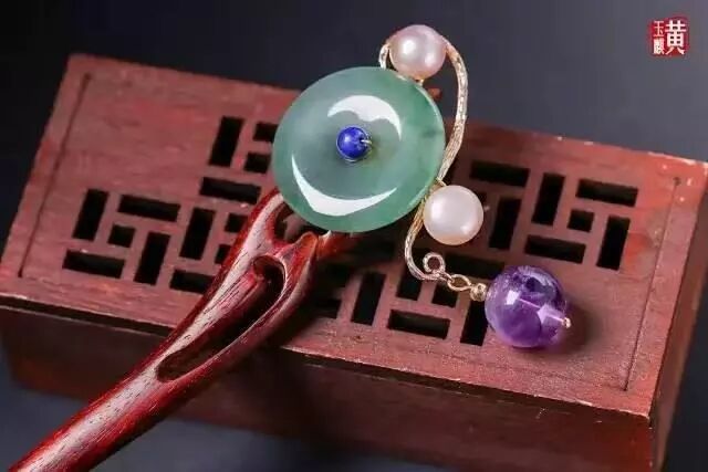 而翡翠的发髻在清代开始使用,那时候大量的翡翠从缅甸传入中国,受到皇宫贵族的喜爱,因而人们开始用翡翠制作发髻。