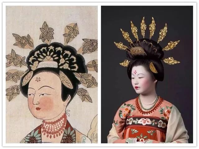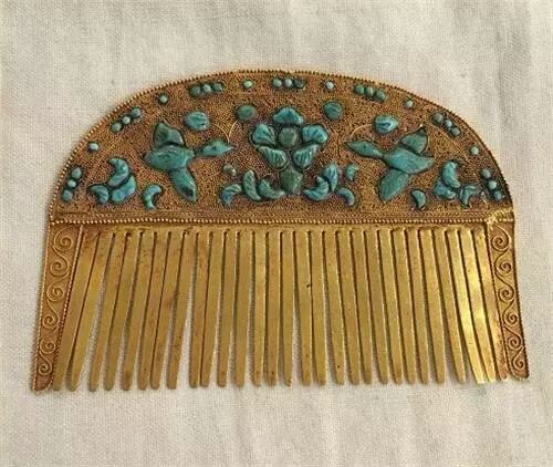 在隋唐时期,梳篦,多作成梯形,在唐代的许多壁画绘画上就能看到许多妇女插头插梳篦的造型。