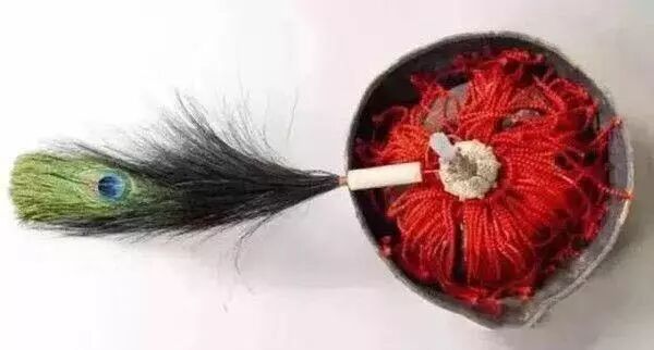 领子其实是孔雀毛,是划分品级的标志,有一眼二眼和三眼之分,三眼最贵,地位也是最高的。