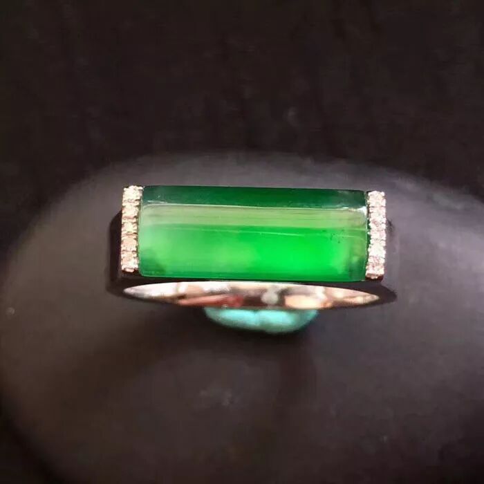 而镶嵌形翡翠戒指,技术更加发达,所以镶嵌方式也更加多样,圆形、椭圆形、菱形等等都有。