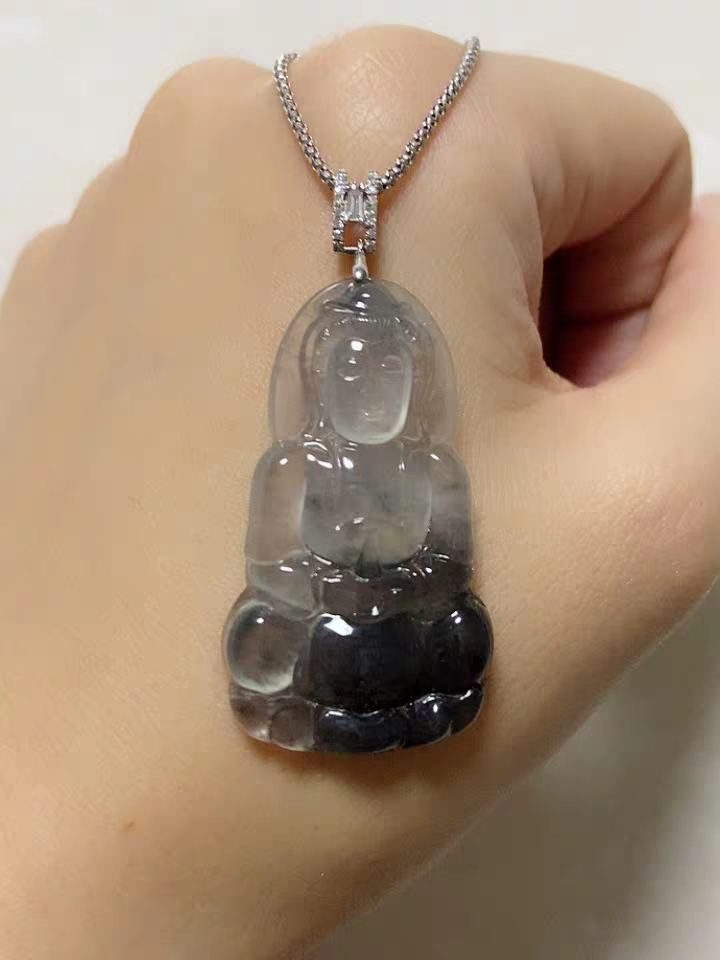 除了像上面那样带一片黑色的,市场上的黑冰翡翠还有图中这样完全呈现出一种冷冷的黑光感的黑冰。我们可以细细体会,它的光感是黑压不住的。曾经有个朋友说,那能不能简单粗暴地理解为黑冰就相当于种水好到极致的黑冰乌鸡,我仔细想了之后,觉得确实也是一个可行的见解。因为种水好到极致就等于稀少,也等于贵,这两点确实跟黑冰的特点都符合。