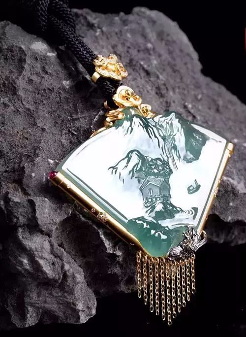 通过18K金分色工艺镶嵌 ,将翡翠包裹起来,用厚重的18K金做出如画作般精致的卷轴,更增添一抹珍贵与非凡。