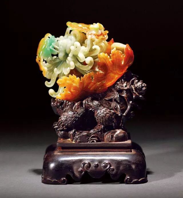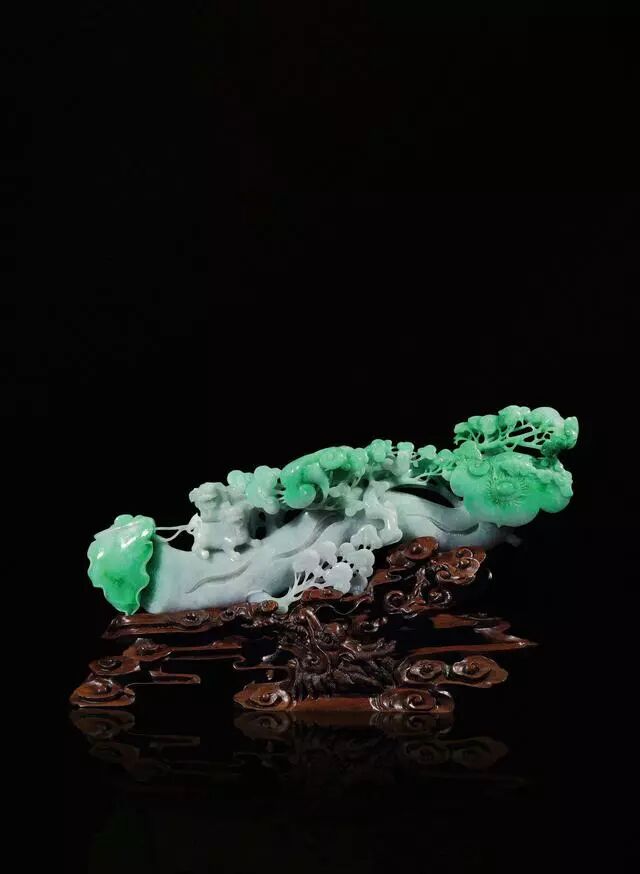 好马配好鞍。优质的底座不仅能更好地安放翡翠摆件,还能提高翡翠摆件的观赏性,因此我们要根据翡翠摆件的题材、颜色和大小来选择合适的底座。
